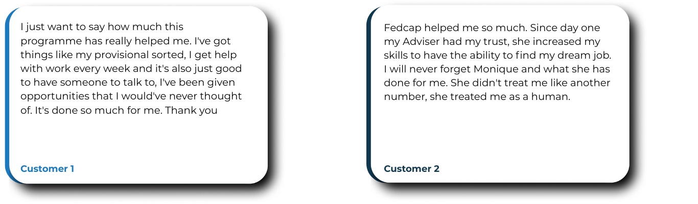 Our Employment Advisers play a vital role in this journey. Their dedication, expertise, and encouragement make a real and lasting impact – and the results speak for themselves. Even after completing the programme, customers continue to benefit from the confidence, tools, and resources they’ve gained.